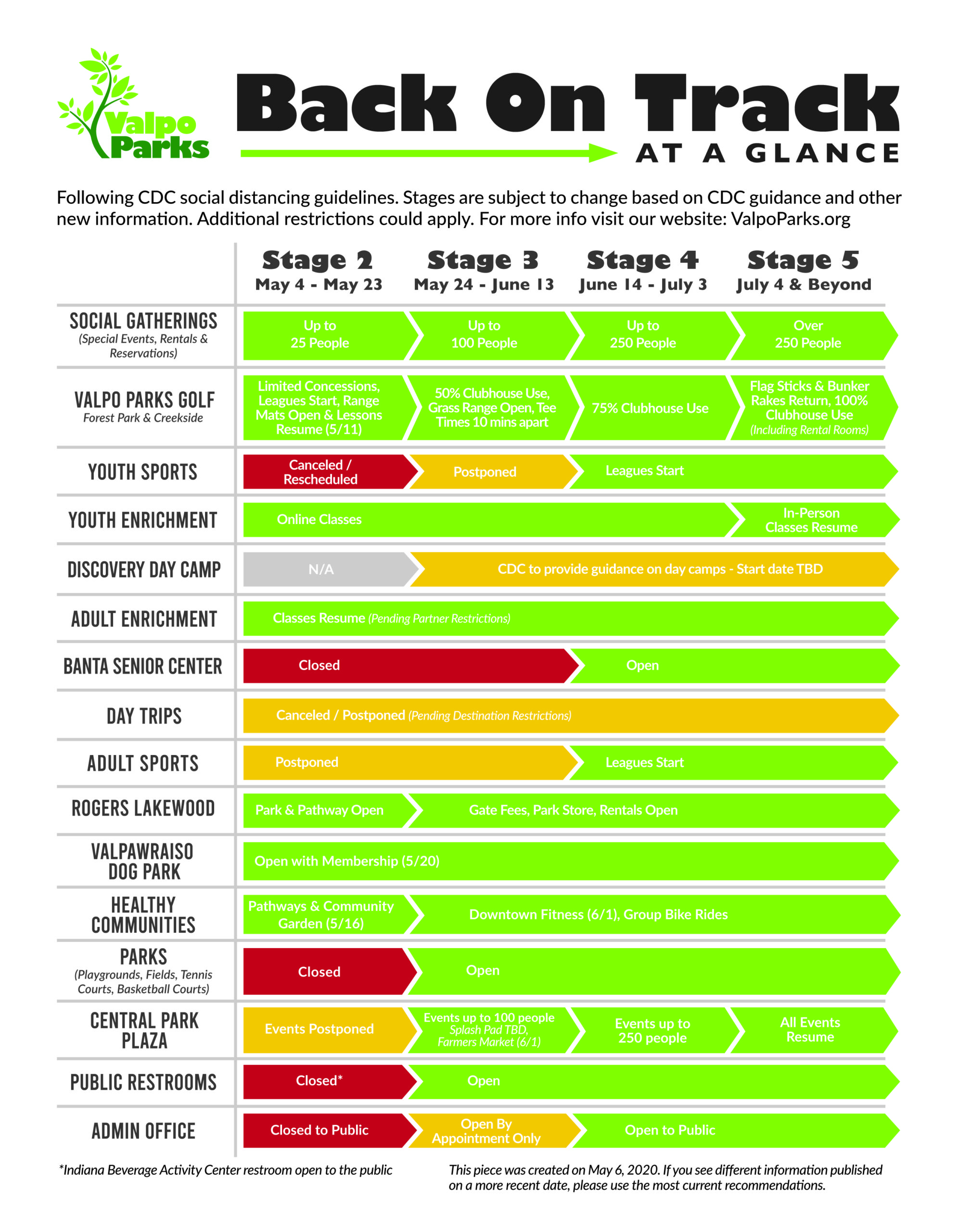 Return to Work Procedures | Park Openings Graph (courtesy Valpo Parks, IN)