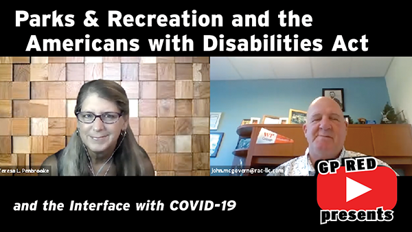 Parks and recreation facilities and programs need to be available for people with all levels of ability. Join John McGovern, JD, Partner & Principal in Charge for the Accessibility Practice at the WT Group (www.wtengineering.com) as he talks with Teresa Penbrooke, PhD, (CEO of GreenPlay – www.greenplayllc.com, & Director of the Healthy Communities Research Group for GP RED – www.gpred.org) about how public parks and recreation agencies can prepare, plan, and manage aspects related to compliance with the Americans with Disabilities Act, and do the right things around providing inclusion services in our communities. (19:49 minutes)